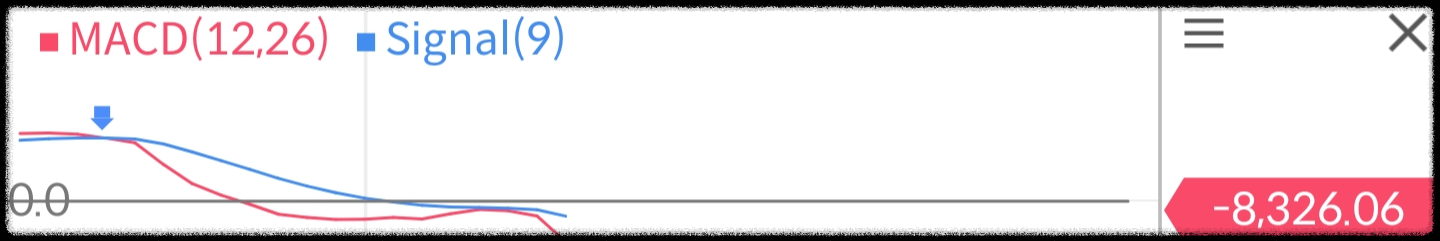 차트 하단의 보조지표는 현재 시장의 심리가 '공포' 그 자체임을 말해줍니다.